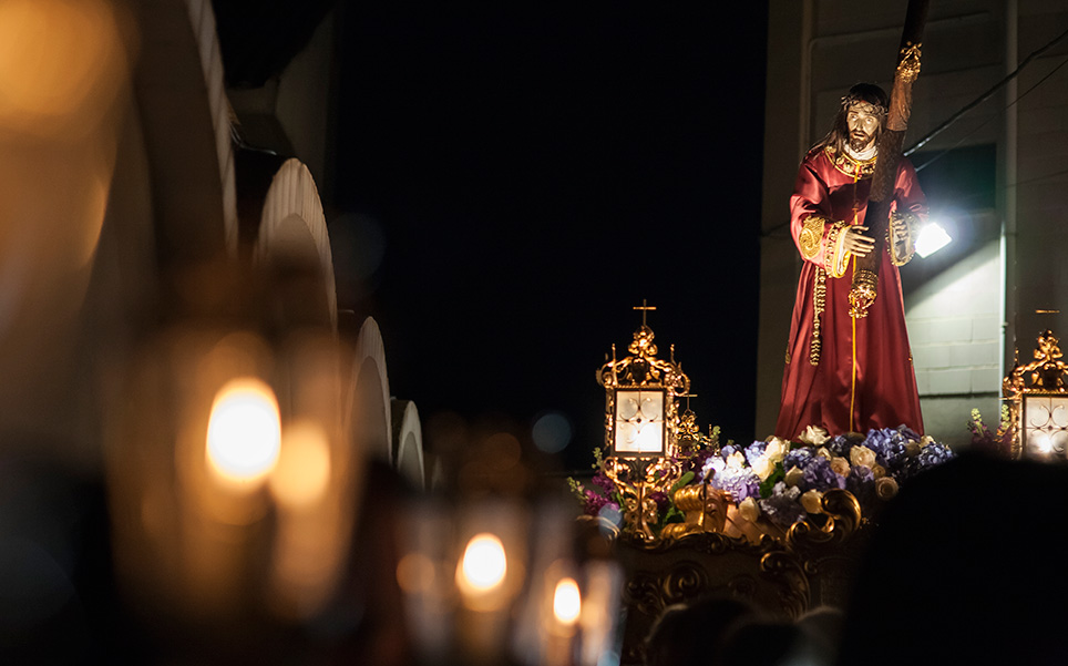 La imagen de Nuestro Padre Jesús del Gran Poder se encuentra durante todo el año en el convento de las MM Capuchinas en el Paseo del Malecón. Próxima la Semana Santa, las religiosas ceden la imagen para que sea procesionada por las calles de Murcia y, el miércoles previo al Viernes de Dolores, al anochecer, parte este singular cortejo recorriendo uno de los paseos más antiguos y queridos de los murcianos: el viejo Malecón.